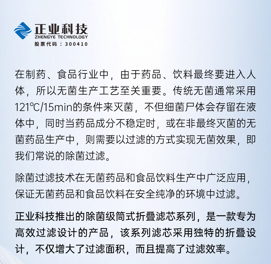 正業(yè)科技 | 除菌級(jí)筒式濾芯為制藥和食品行業(yè)保駕護(hù)航